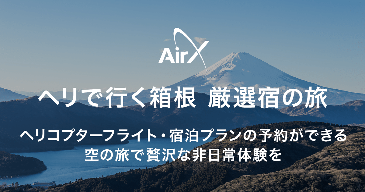AirX、1人10万円台のヘリ送迎付き『箱宿リトリート』宿泊プラン、東京から35分で箱根の温泉付きリゾートへ