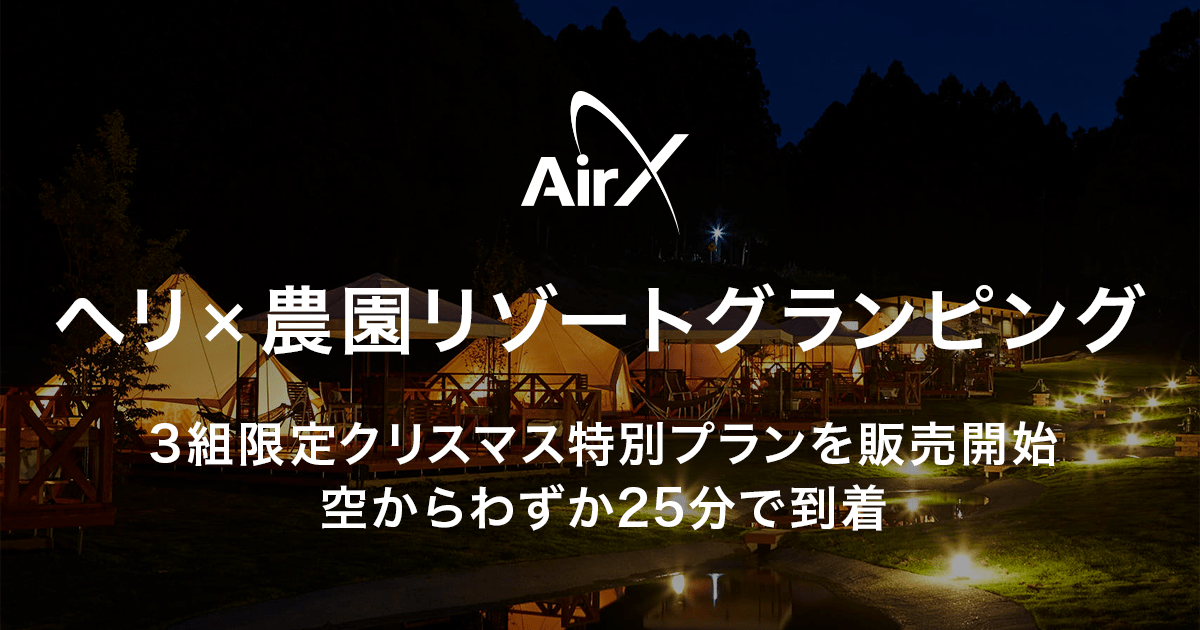 AirX、農園リゾート「THE FARM」とヘリコプター旅行プランをスタート! 3組限定クリスマス特別プランを販売開始